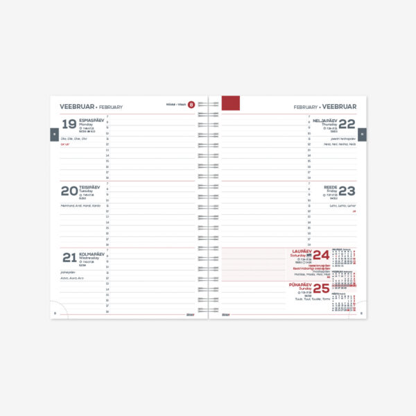 kalendri sisu nädal, spiraalköide, perforeeritud lehenurgad, 131x184mm