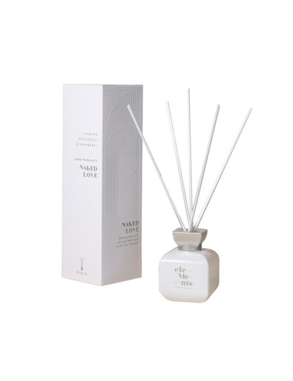 Valge minimalistliku ja ainulaadse disainiga pakend sisaldab 100 ml valget pudelit elegantse plaatinavärvi dekoratiivdetaili ja 10 valget pulka, mis on seotud paelaga. Iga detail on loodud mõeldes Sulle.