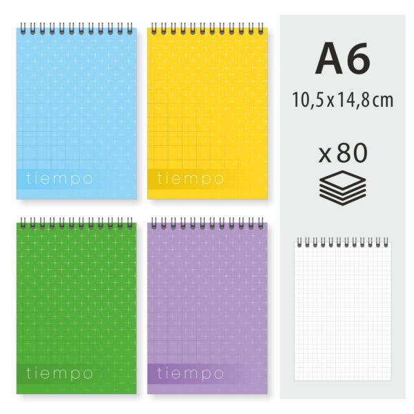 Spiraaliga märkmik ülevalt A6, 80 lehte, ruuduline
