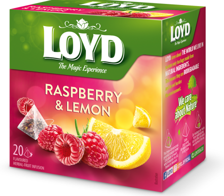 Taime- ja puuviljatee LOYD vaarika- ja sidrunimaitseline 20 x 2g