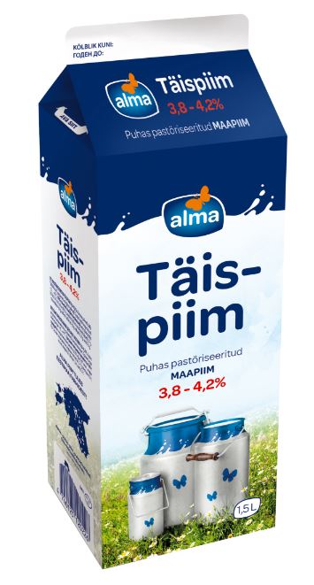 Täispiim ALMA vaba rasvasisaldusega 3,8-4,2% 1,5L